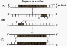 (2) B - Denaturation at a temperature of about 98°C separating the two DNA strands.