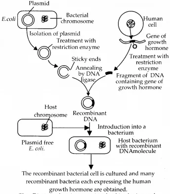 The given diagram represents the experimental steps in cloning and expressing a human gene for growth hormone into a bacterium E. coli.
