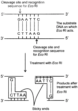 Fig.: Diagrammatic representation of action of restriction enzyme Eco RI