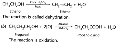 How would you bring about the following conversions? Name the process and write the reaction involved. (a) Ethanol to ethene (b) Propanol to propanoic acid