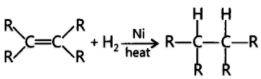 When unsaturated hydrocarbons are heated with hydrogen in the presence of nickel as catalyst, saturated hydrocarbons are formed. If the starting unsaturated hydrocarbons are liquids, they will change into solids. Vegetable oils are hydrogenated to form vegetable ghee. Plants are natural sources of vegetable oils which can be hydrogenated.