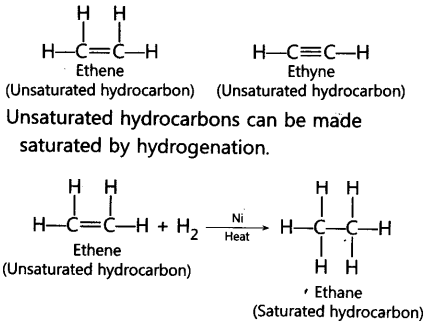 What are the hydrocarbons write the name and general formula of (i) saturated hydrocarbons, (ii) unsaturated hydrocarbons, and draw the structure of one hydrocarbon of each type? How can an unsaturated hydrocarbon be made saturated?