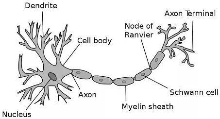 What is a neuron? Draw a labelled diagram of a neuron. (b) What is a synapse? What happens at the synapse between two neurons? How are the messages carried across a synapse?