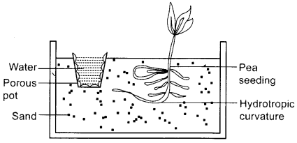 - As water is not available in sand, the root growing will bend towards the porous pot filled with water.