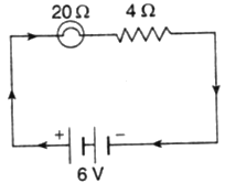 An electric bulb of resistance 20 Ω and a resistance wire of 4 Ω are connected in series with a 6 V battery.