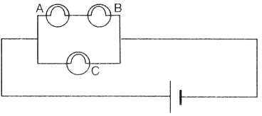 (c) If B burns put, A will also stop glowing because it is connected in series with B. However, brightness of C remains the same.