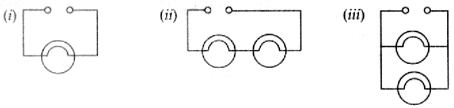 Consider the circuits given below : (a) In which circuit are the lamps dimmest? (b) In which circuit or circuits are the lamps of equal brightness to the lamps in circuit?