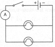 (d) Draw a circuit diagram showing two electric lamps connected in parallel together with a cell and a switch that works both lamps. Mark an Ⓐ on your diagram to show where an ammeter should be placed to measure the current.