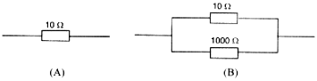 Which of the following resistor arrangement, A or B, has the lower combined resistance?