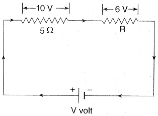(ii) Since 5 ohm resistor and R are connected in series, so same current flows through them.