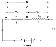 (a) Fig shows two resistance R1 and R2 connected in series with a battery of V volts.