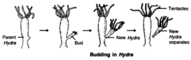 With the help of suitable diagrams, explain the various steps of budding in Hydra.