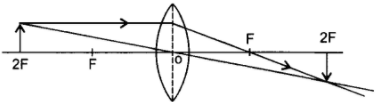 Object is placed at 2F, image is also formed at 2F on the other side of the lens. So, image will be of the same size as the object as |u| = |v| and, therefore, the height of the image will be 2 cm.