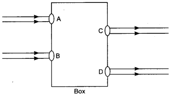 Beams of light are incident through the holes A and B and emerge out of box through the holes C and D respectively as shown in the figure. Which of the following could be inside the box?