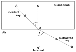 (a) Ray of light travelling from air into an optically denser medium.