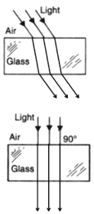 Draw and complete the following diagrams to show what happens to the beams of light as they enter the glass block and then leave it :