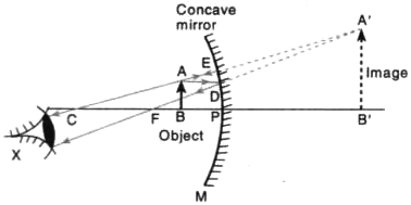 Minimum two rays are required for locating the image formed by a concave mirror for an object.