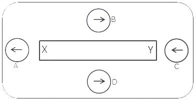 (a) The diagram shows a bar magnet surrounded by four plotting compasses. Copy the diagram and mark in it the direction of the compass needle for each of the cases B, C and D.