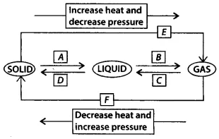 Name A, B, C, D, E and F in the following diagram showing change in its state.
