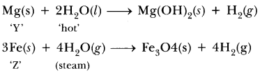 Of the three metals X, Y and Z, X reacts with cold water, Y with hot water and Z with steam only. Identify X, Y and Z and also arrange them in order of increasing reactivity.