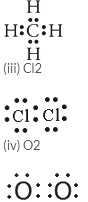 What type of bonds are present in the following molecules? Draw their electron-dot structures. (i) H2 (ii) CH4 (iii) Cl2 (iv) O2