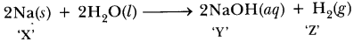 When a metal ‘X’ is treated with cold water, It gives base salt ‘X’ with molecular formula XOH (Molecular mass = 40) and liberate a gas Z which easily catches fire. Identify X, Y and Z and also write the reaction involved.
