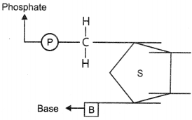 Mention the carbon positions to which the nitrogenous base and the phosphate molecule are respectively linked in the nucleotide given below: