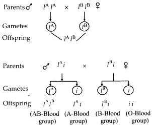Thus the genotypes of the parents of child with blood group O will be IAi and IBi There is the possibility of 3 other types of blood groups of offsprings besides O blood group offspring. They are IAi (blood group A). IBi (blood group B) and IAIB (blood group AB).