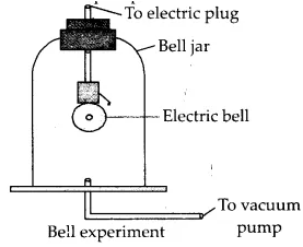 Take an electric bell and an air tight glass bell jar. The electric bell is suspended inside an air tight glass jar which is connected to a vacuum pump.