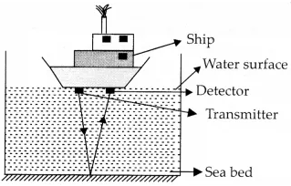 SONAR consists of a transmitter and a detector and is installed in a boat or a ship as shown in figure.