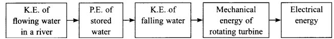 The energy transformation taking place at hydropower plants is shown below: